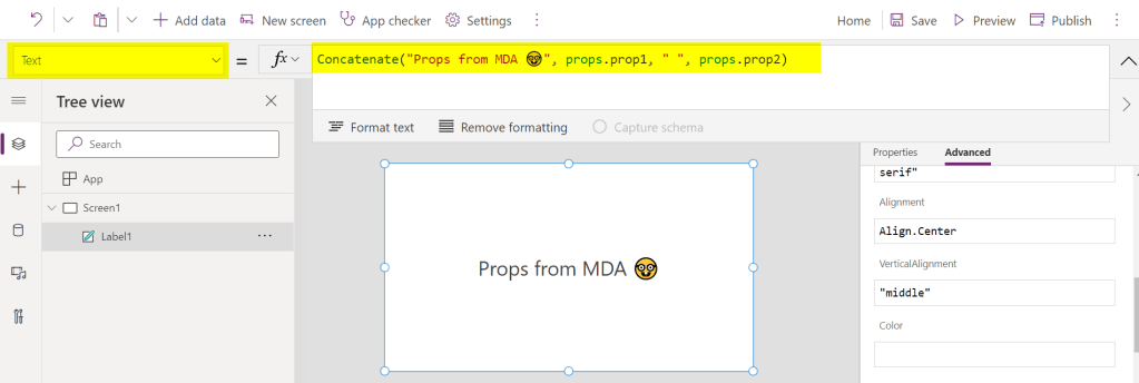 Concatenate("Props from MDA πŸ€“", props.prop1, " ", props.prop2)