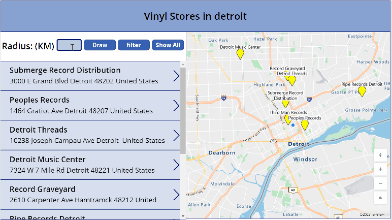[Power Apps – Geospatial features] How to implement a radius-based location search ?